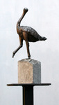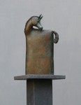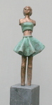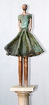 2010dame op hoog niveau op koperen stoel op haardstenen sokkel