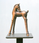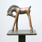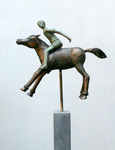 2011zigeunerjongen op paard ongezadeld op hardstenen sokkel